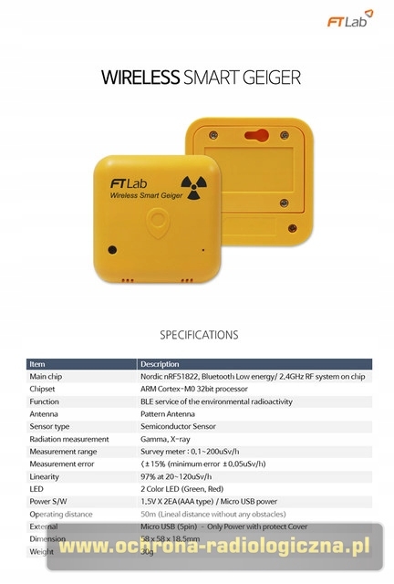 Bezprzewodowy Licznik Geigera jest inteligentny Licznik Geigera, być podłączony do smartphone/tablet do wykrywania Gamma i rtg w naszym otaczającego środowiska.