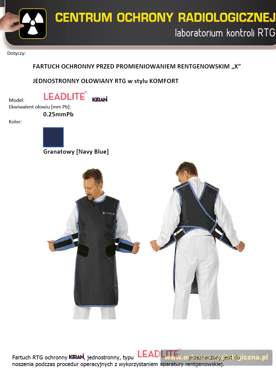 Fartuch ochronna przed promieniowaniem RTG 0.35mmPb