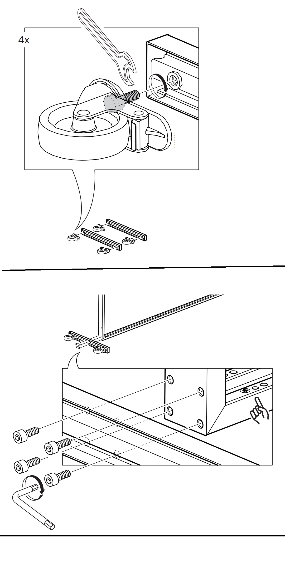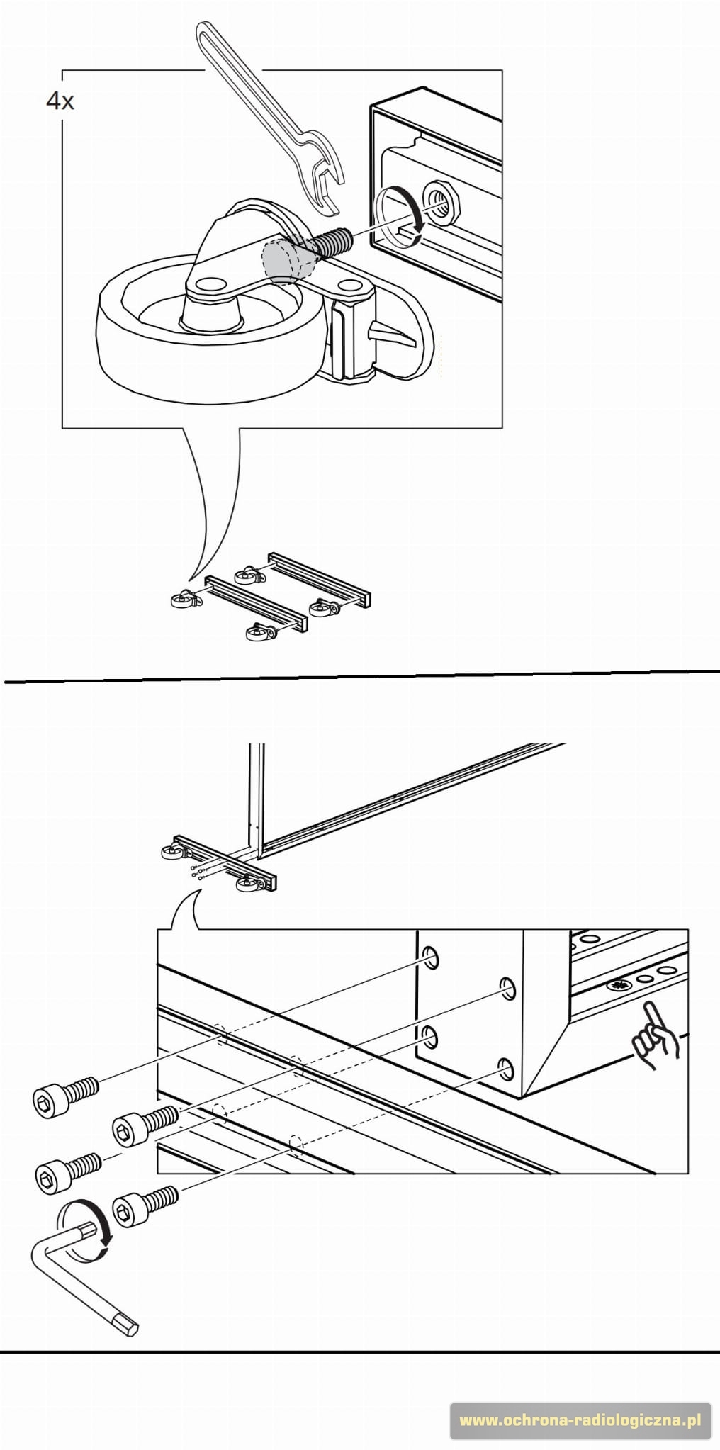 dokręcenie podstawy jezdnej za pomocą załączonego klucza i 8 śrub.