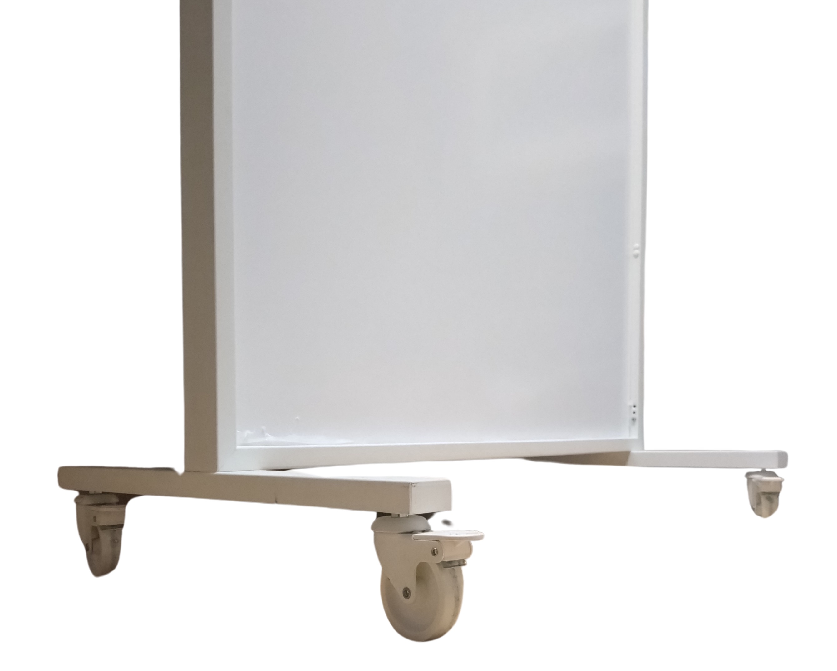 Parawan jednoskrzydłowy ochronny do pracowni RTG, mobilny, ołowiany o grubości ołowiu 0.50 mm Pb, o wzmocnionej konstrukcji stalowej, na ramie ze stali proszkowo malowanej, na biało.