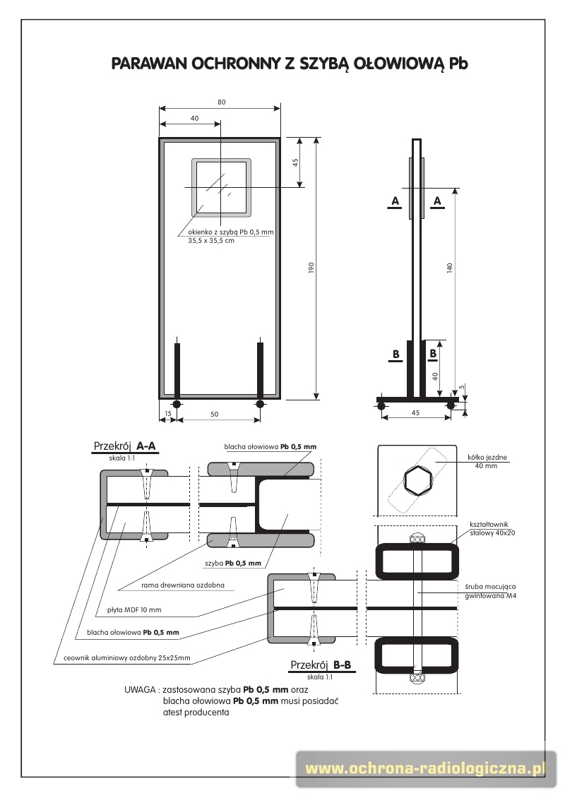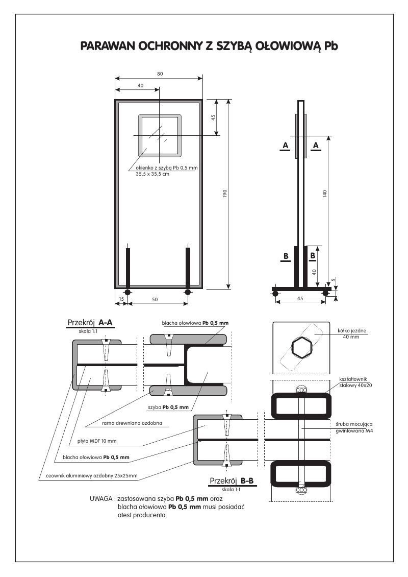 PARAWAN OŁOWIANY MOBILNY Z SZYBĄ OCHRONNA OŁOWIANĄ 1.8mmPb