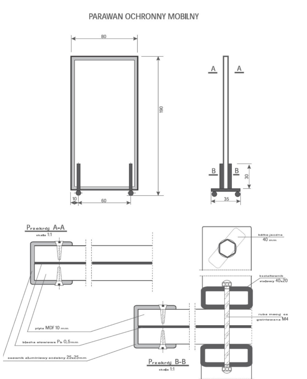 ◦ Ochroność parawanów: 0,50 mmPb - 1,00 mmPb -1,50 mmPb - 2,00 mmPb.