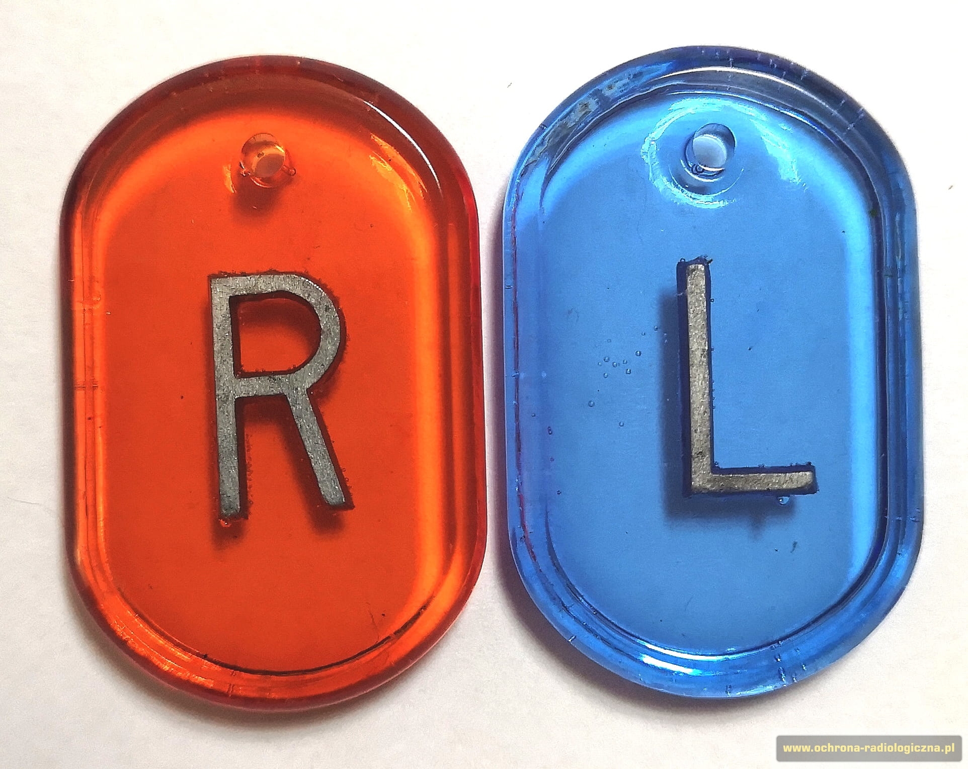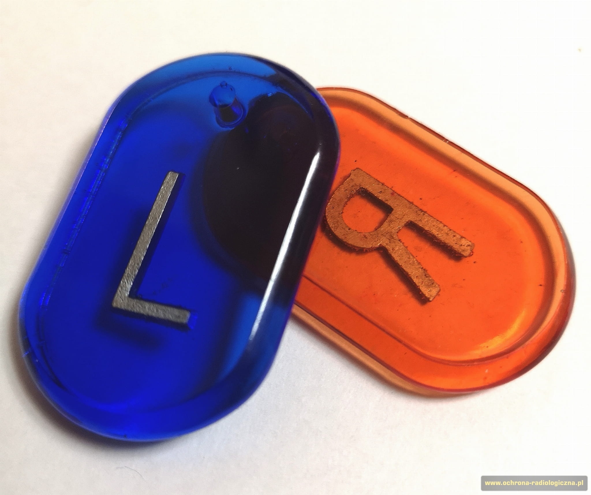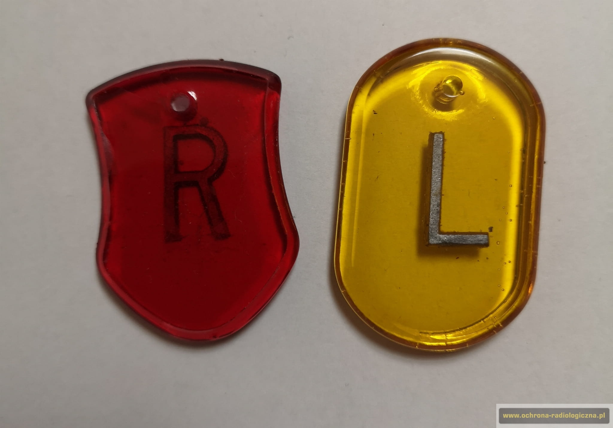 Komplet składa 2 znaczników -zatopionych w plastiku literka ołowiana R prawy, literka ołowianan L lewy.