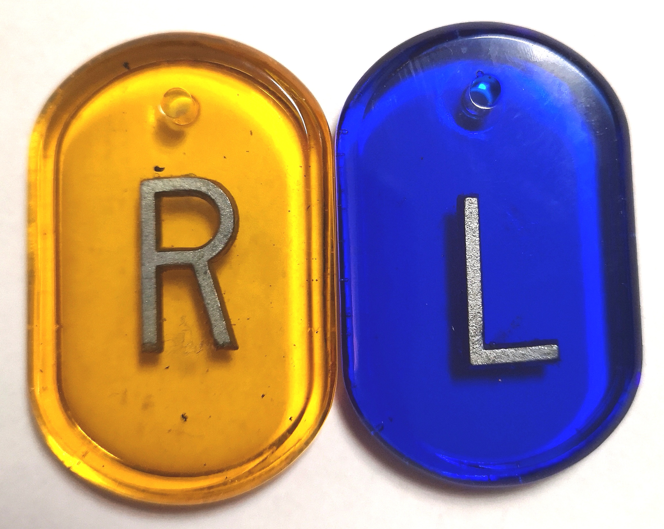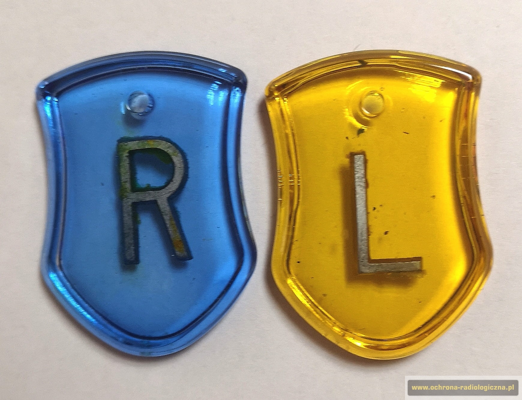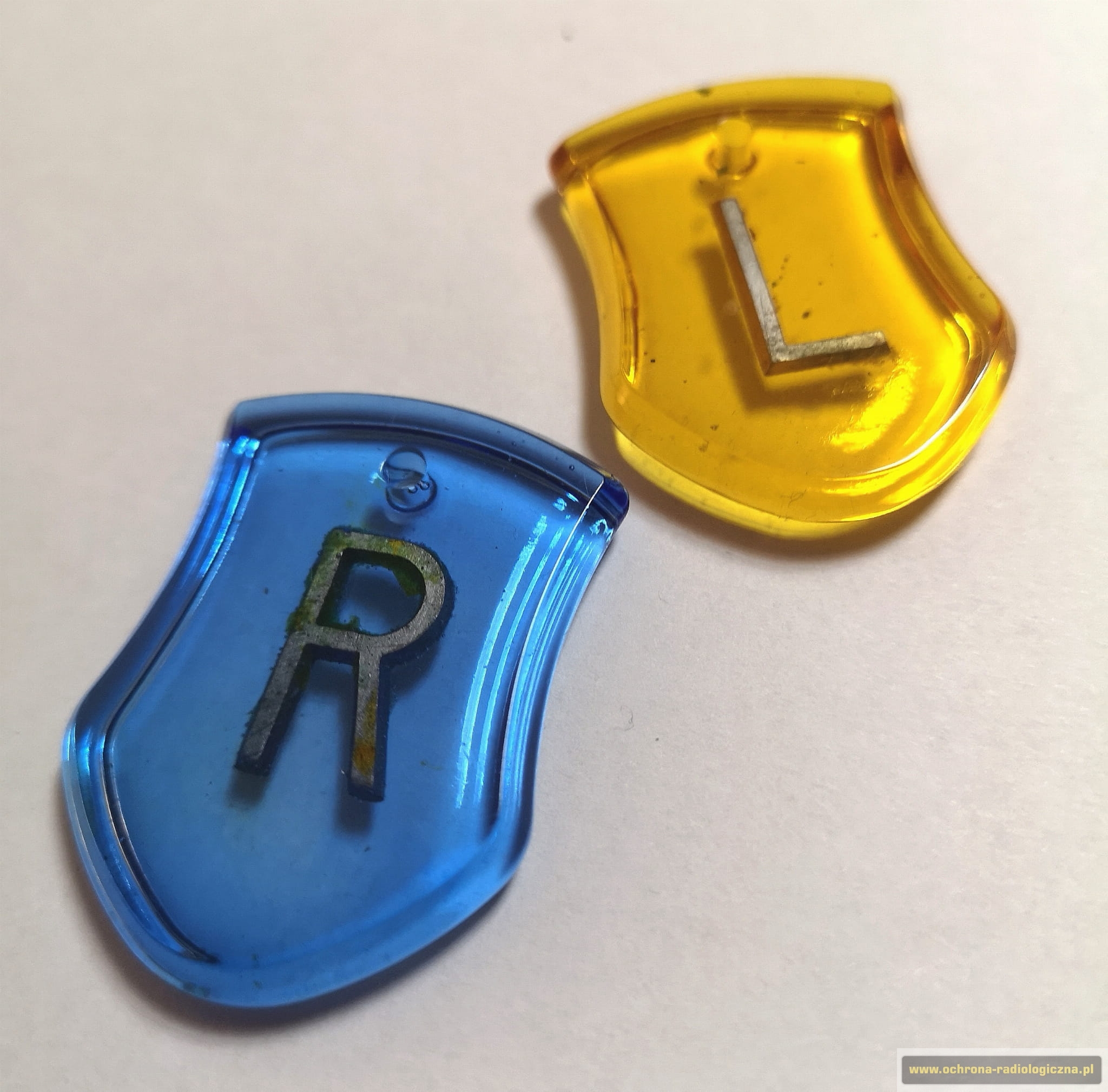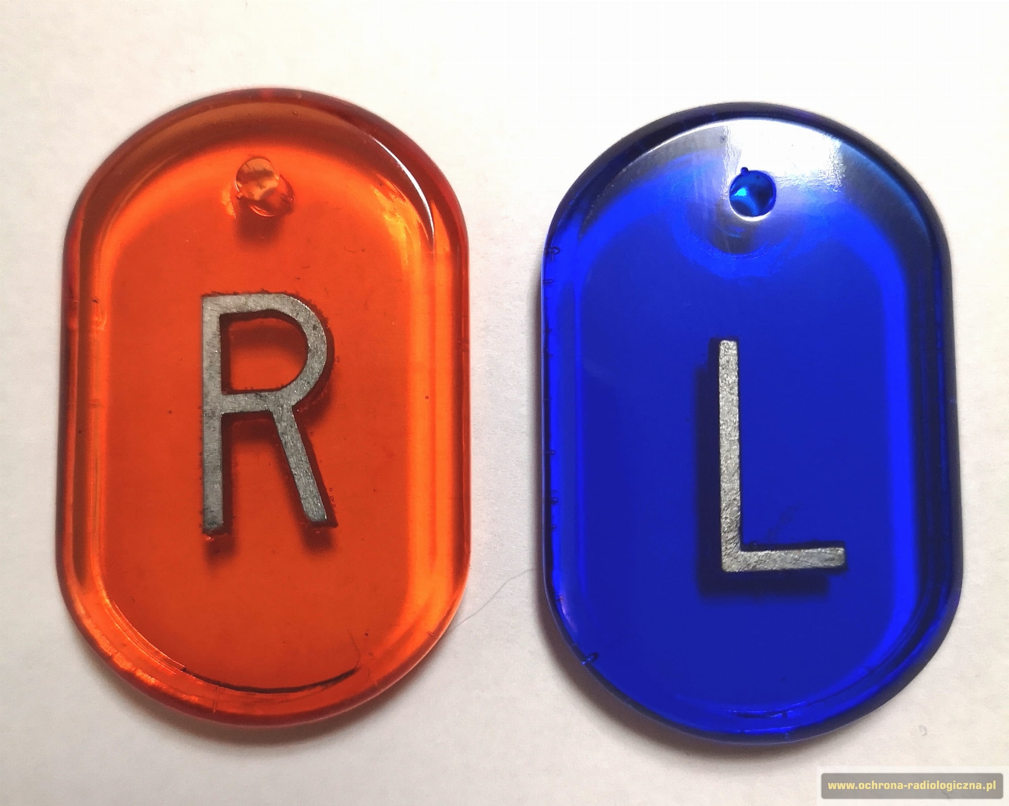 Komplet składa 2 znaczników -zatopionych w plastiku literka ołowiana R prawy, literka ołowianan L lewy.